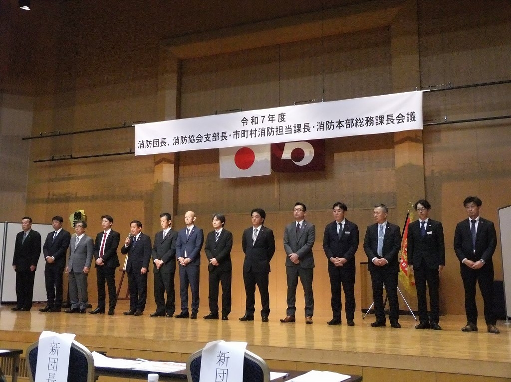昨年の団長会議以降に就任された14名の新団長がステージに上がり、自己紹介をしました。