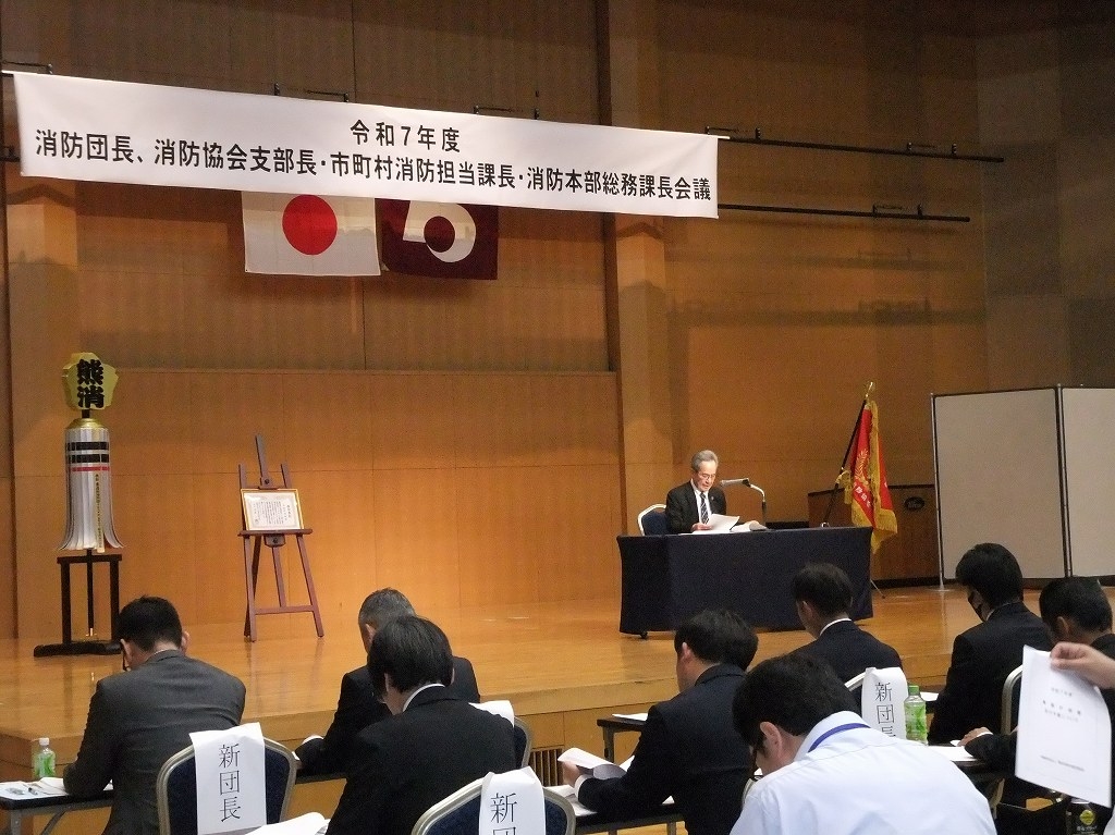 会議では、当協会の「令和7年度事業計画及び予算等」の説明に続き、熊本県消防保安課長から「消防力の強化」について、熊本県消防学校長からは「消防団員初級幹部科教育の概要」について説明されました。